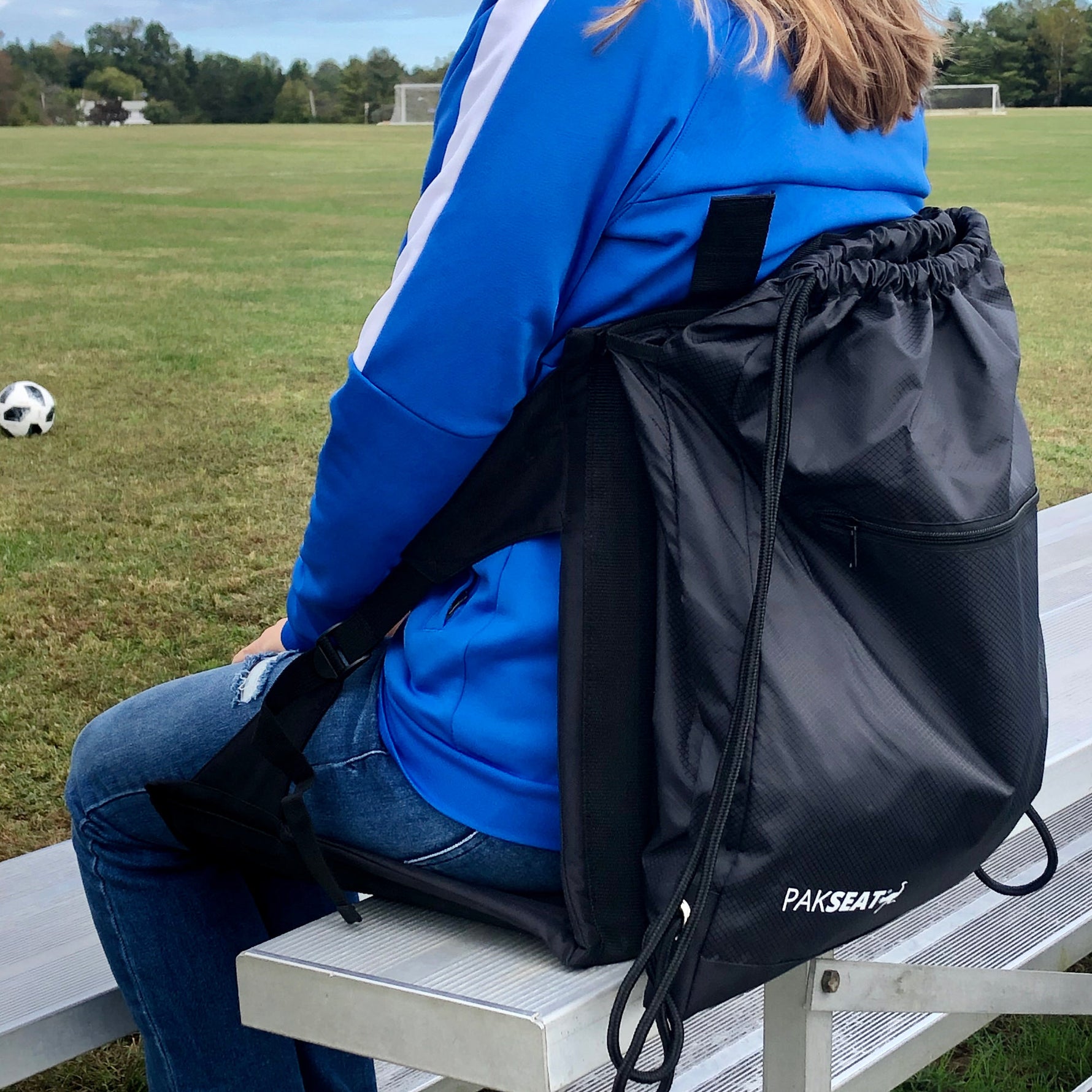 Introducing the NEW (Patent Pending) PakSeat. The first 2N1 Backpack and Seat combo. The versatile PakSeat has plenty of room for all of your stuff and has a hidden seat that folds out when you need it! Never be stuck without a seat again! Players & Parents no longer have to sit on the hard floor, stadium bench or wet grass again. Now their bag comes with a seat! Take it to the soccer field, a stadium event, outdoor concert, the pool, the park, the beach, a camping trip and more. Where will you take your Pakseat?
