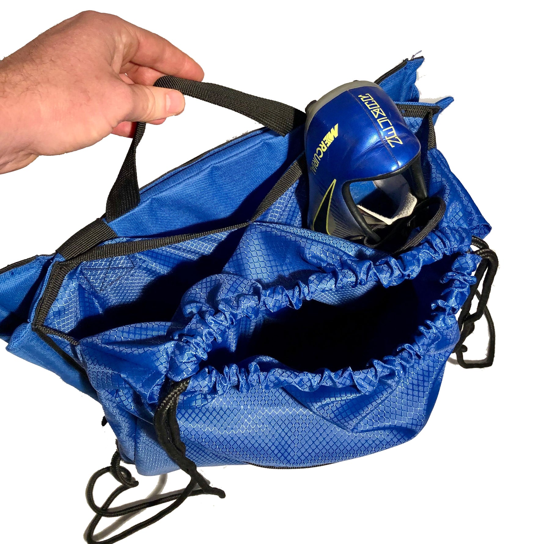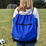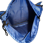 - The backpack string bag compartments include: one large storage area; one large zipper pocket and two large water bottle or athletic shoe sleeve pockets.